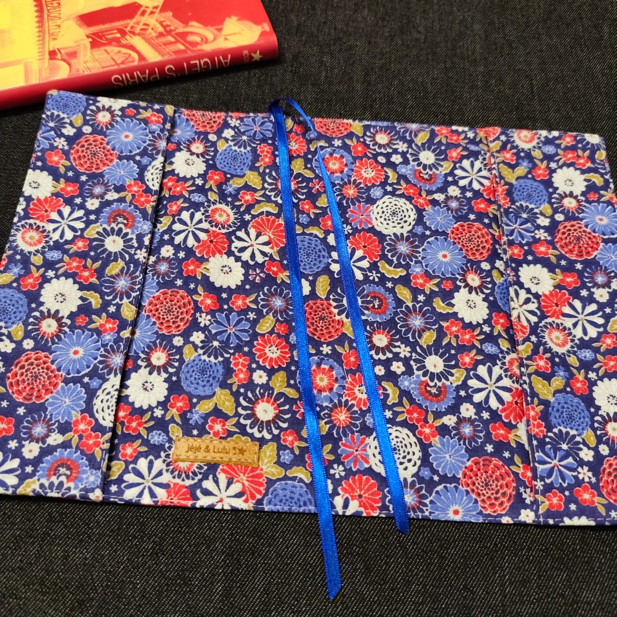 - extérieur et doublure : coton motif japonais fleuri ( chrysanthèmes bleu, blanc, rouge) sur fond bleu