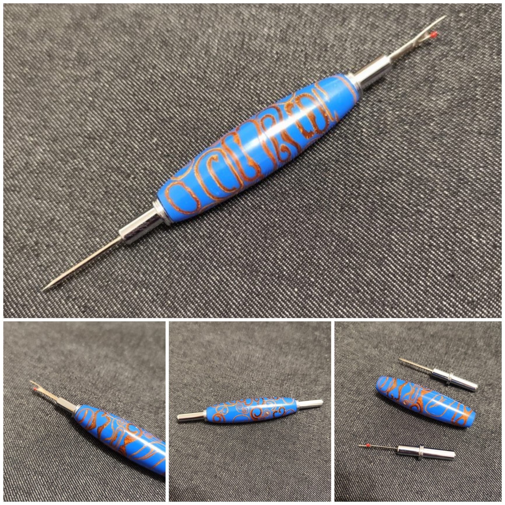 Je vous propose ici un accessoire très utile en couture: un duo découseur / poinçon.