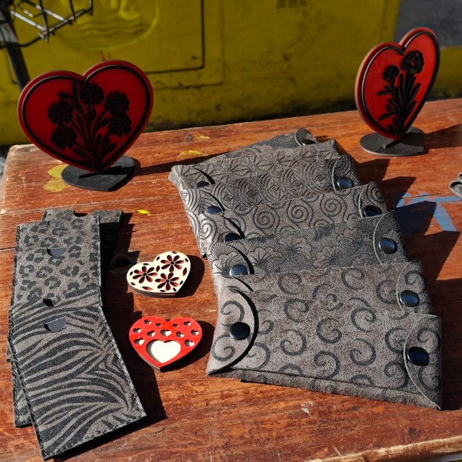 Elle est en simili cuir gravé par nos soins. Avec son système de pression, cette mini trousse de poche, qui prendra très peu de place dans votre sac, peut s'ouvrir entièrement.