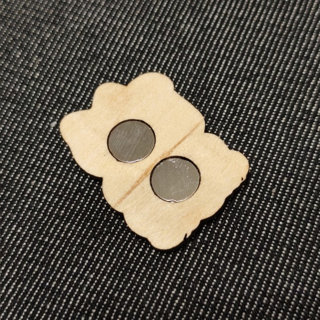Je vous présente ici un petit magnet en contreplaqué, conçu, gravé et découpé par mes soins.
