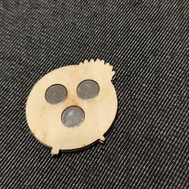 Je vous présente ici un petit magnet en contreplaqué, conçu, gravé et découpé par mes soins.