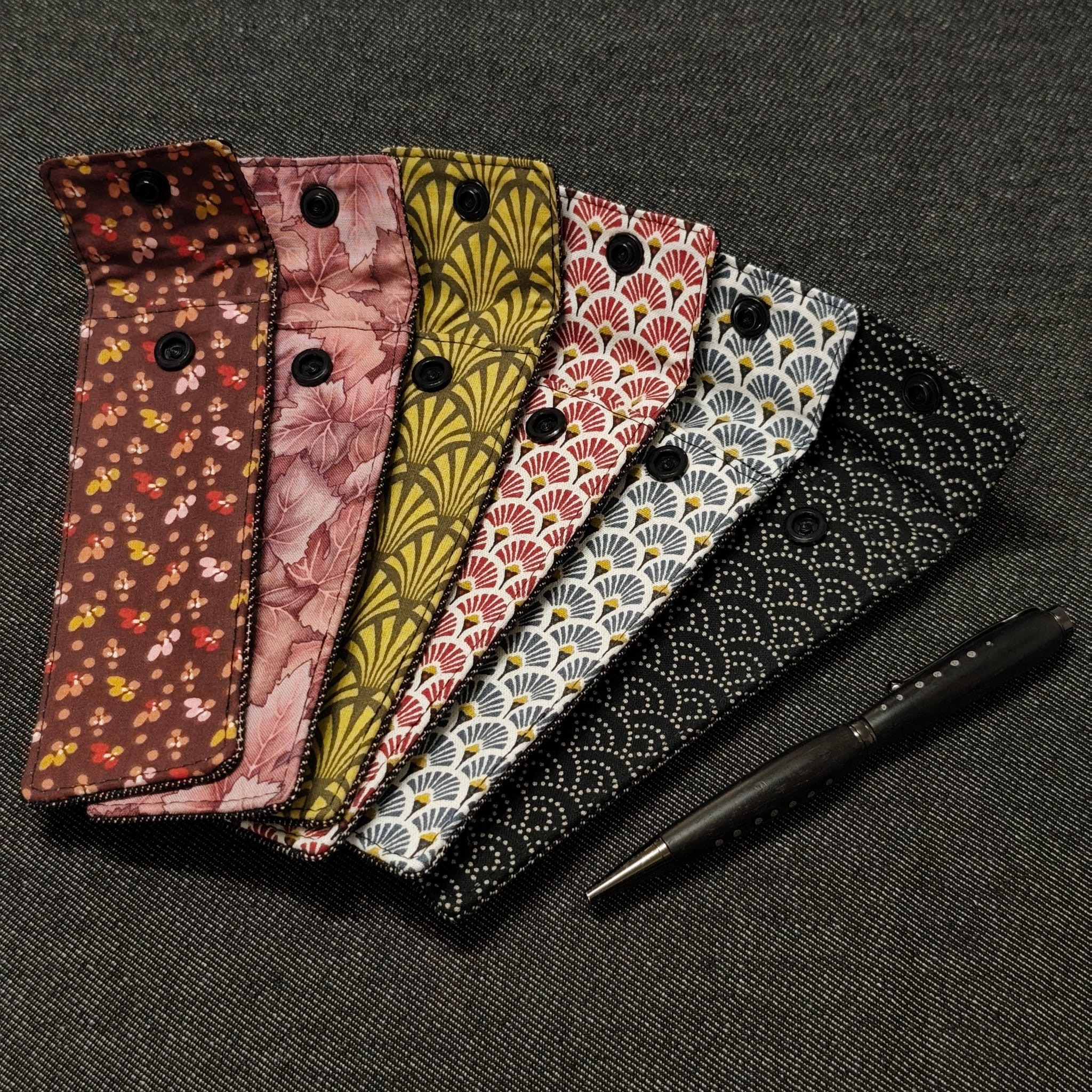 Je vous présente ici un élégant modèle d'étui à stylos / découd-vite fait-main.