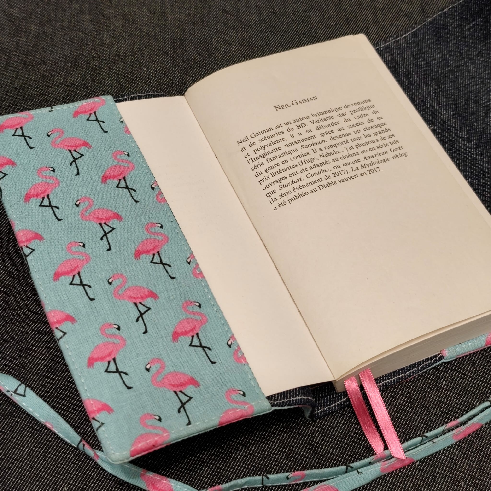 Je vous présente ici un élégant modèle de protège livre en tissu fait main.