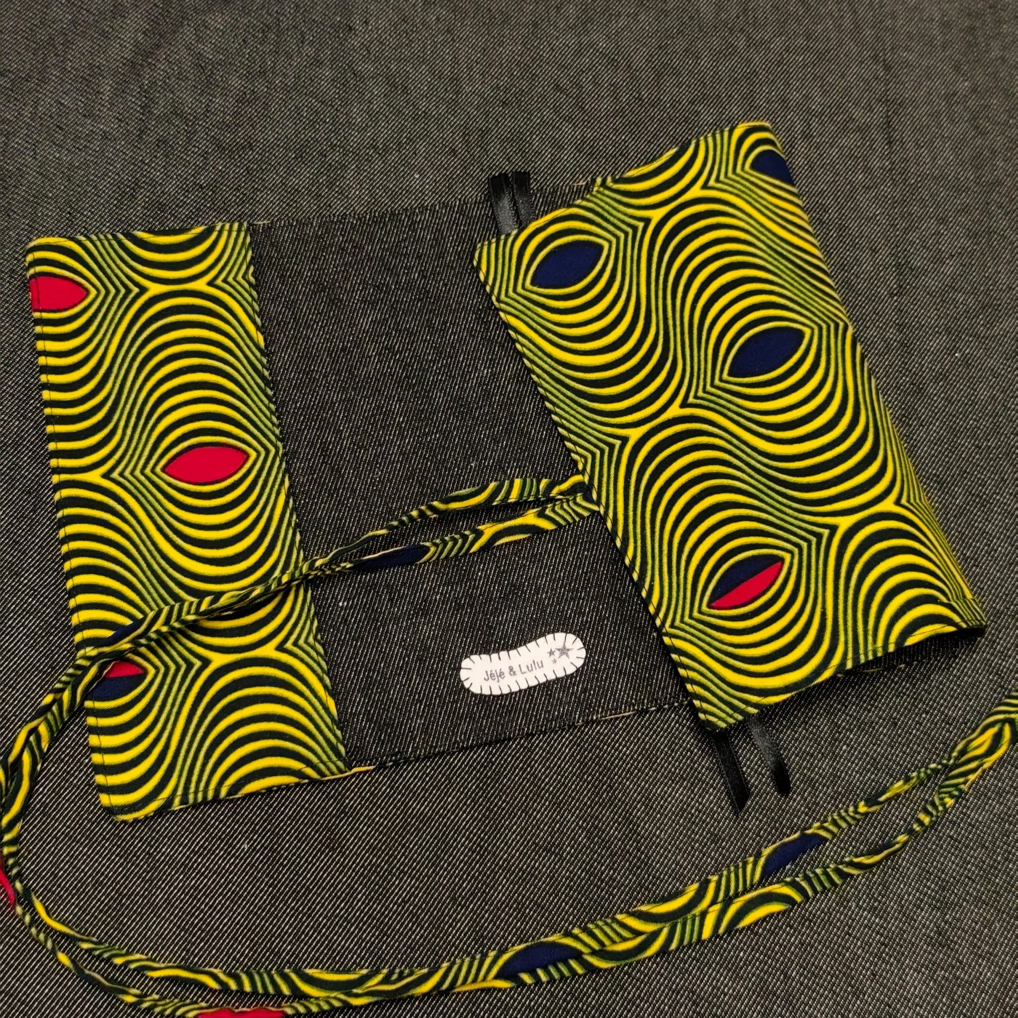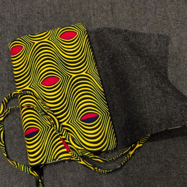 - extérieur: coton wax motif psychédélique / Illusion d'optique jaune rouge bleu noir.