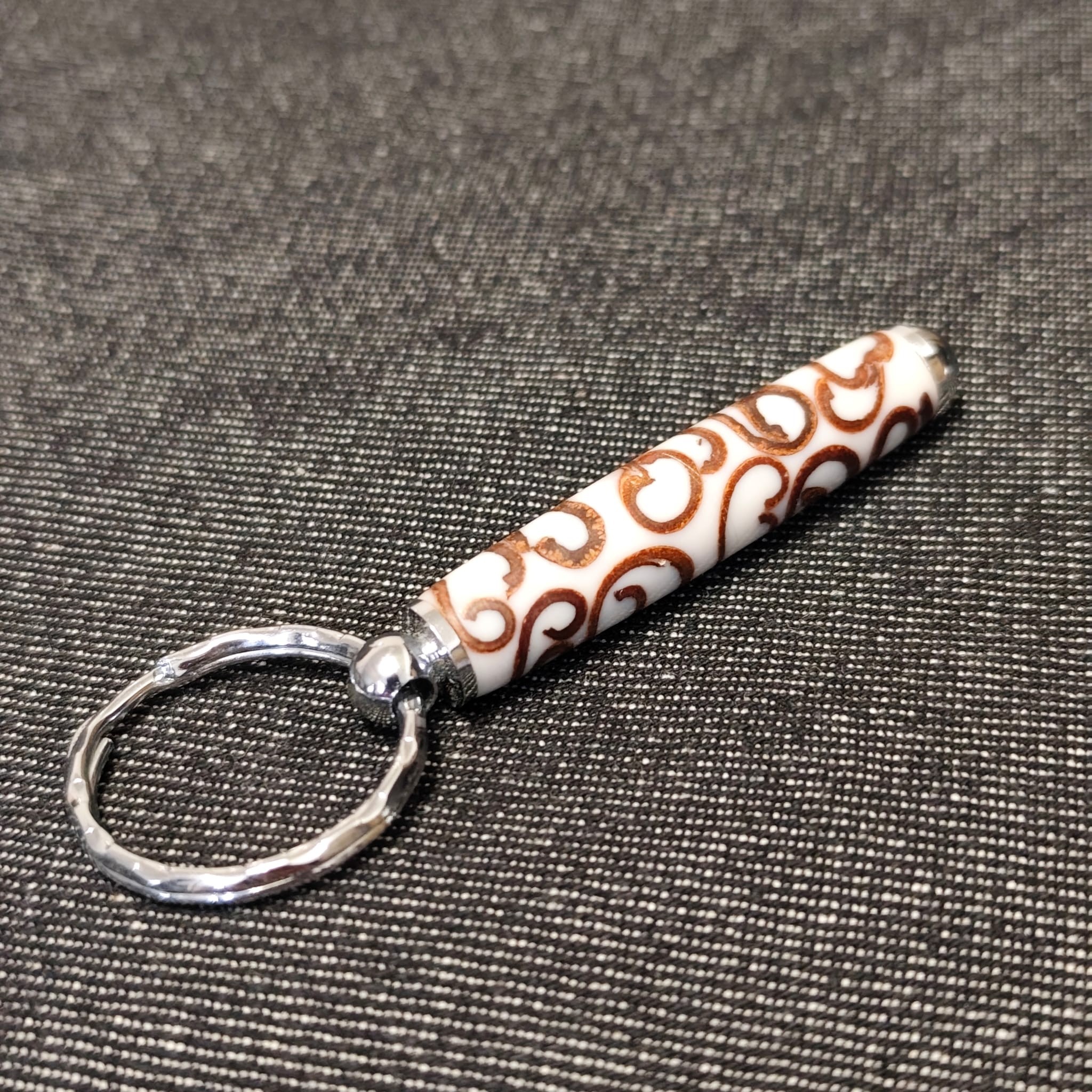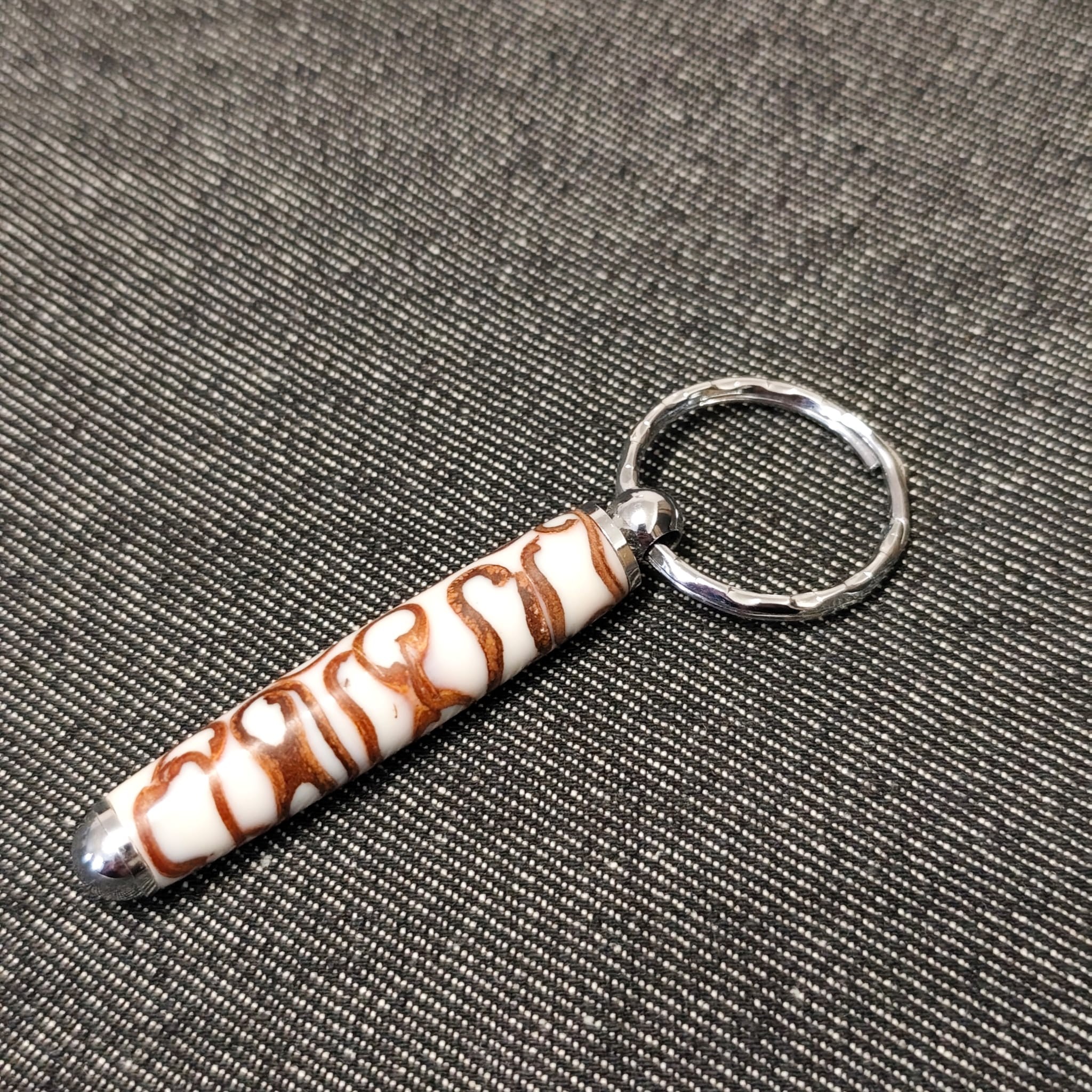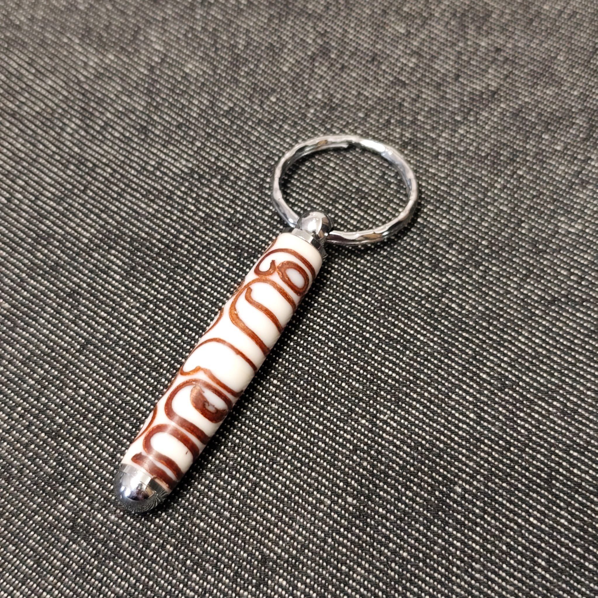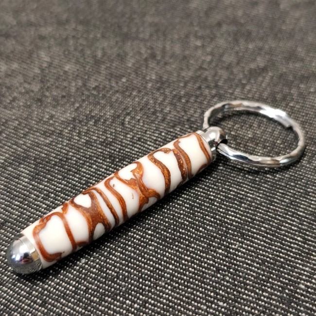 Je vous présente ici un porte-clés original en cannelle et résine blanche.