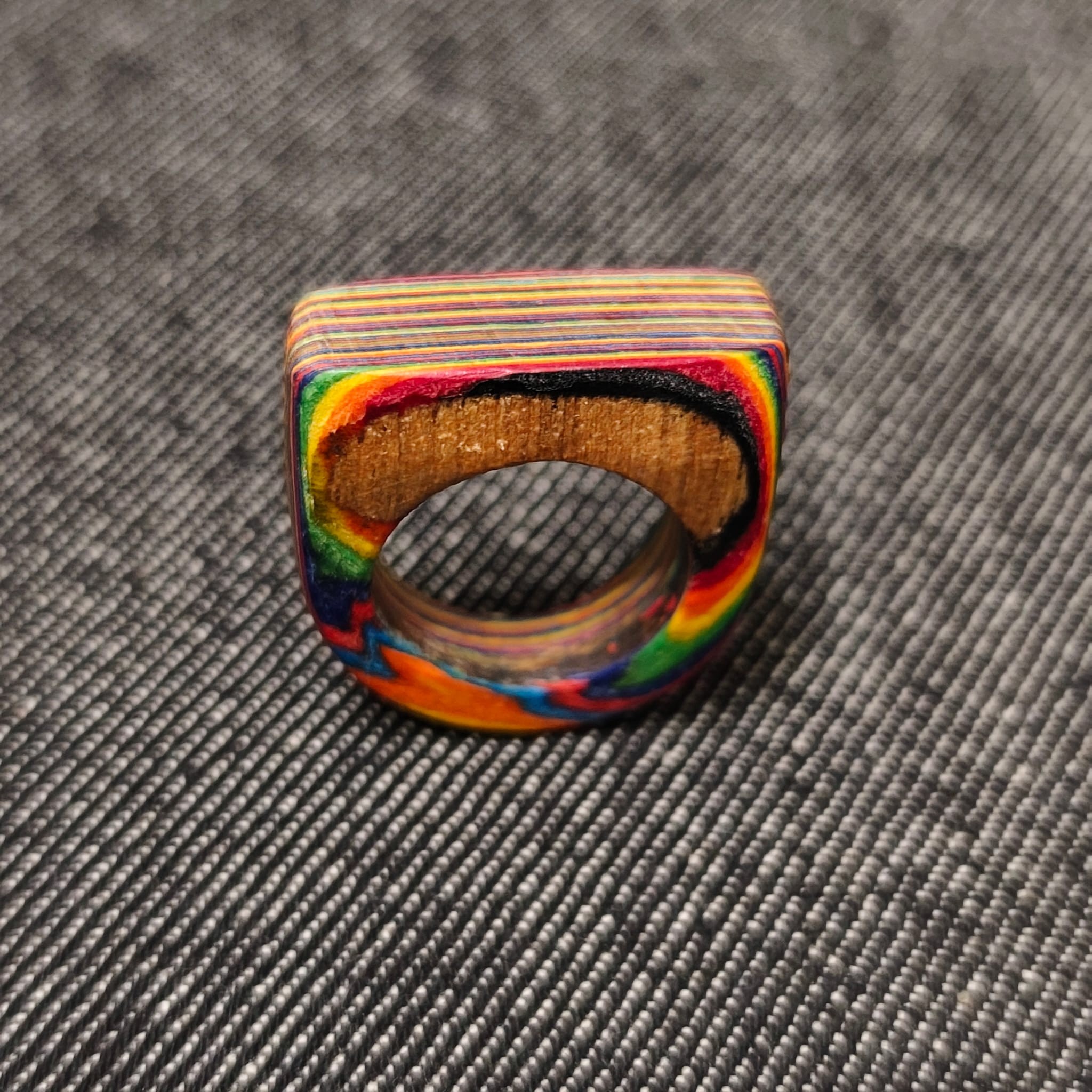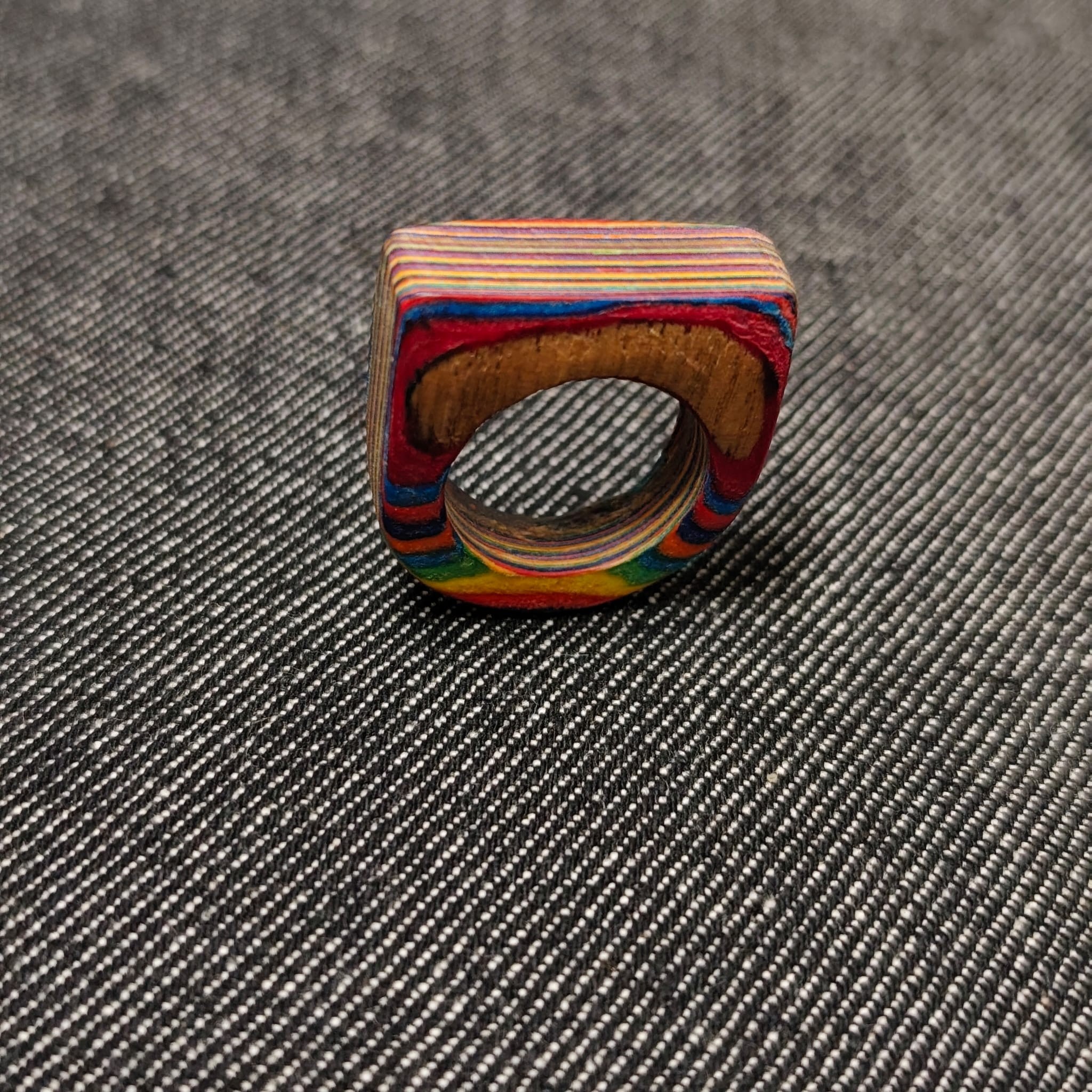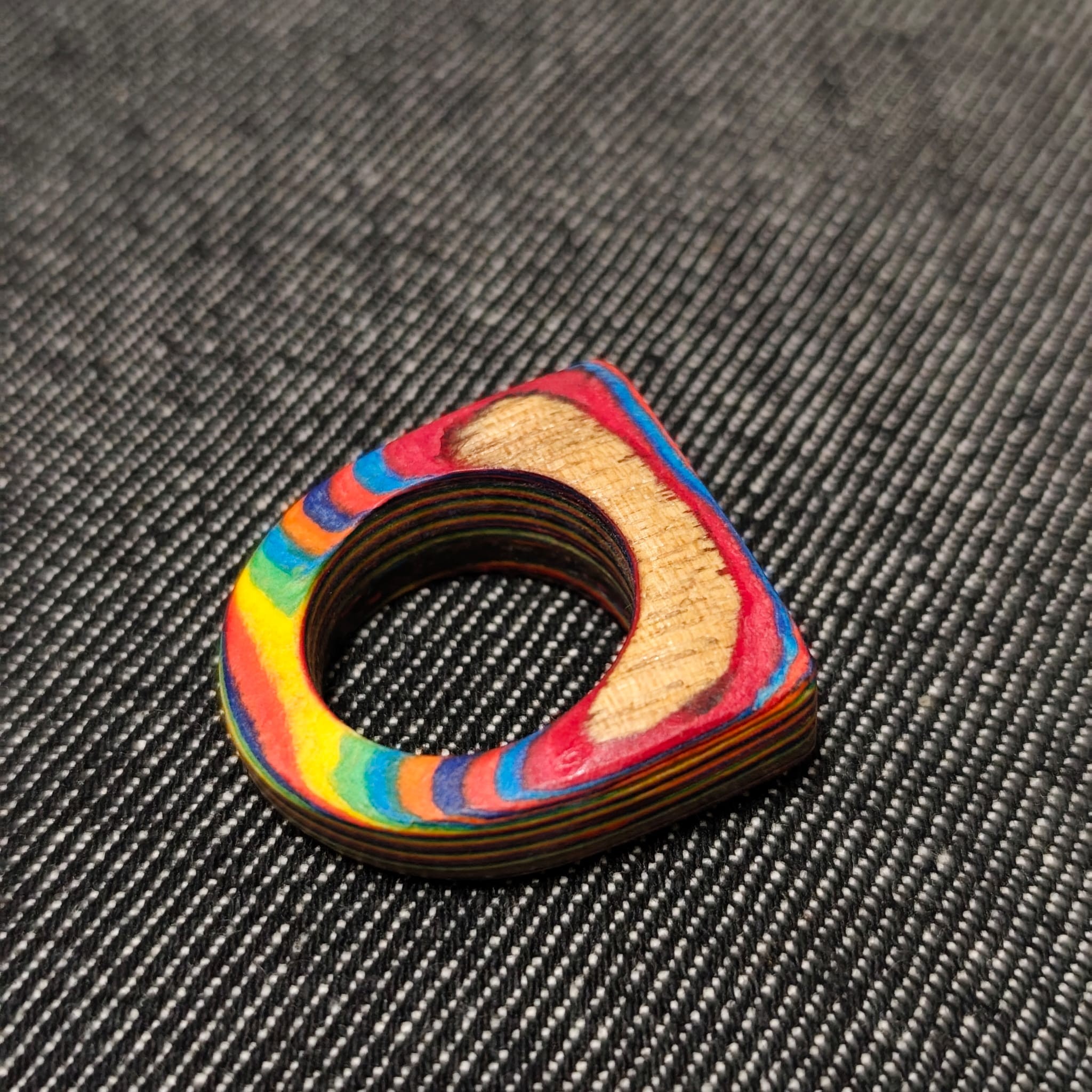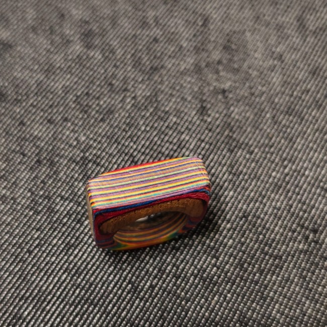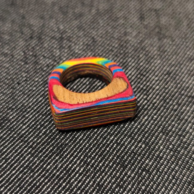 Je vous présente ici un bijoux artisanal, entiérement crée par mes soins: une belle bague en papier à la forme originale et aux coloris plein de peps