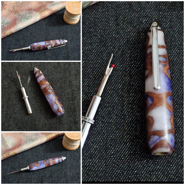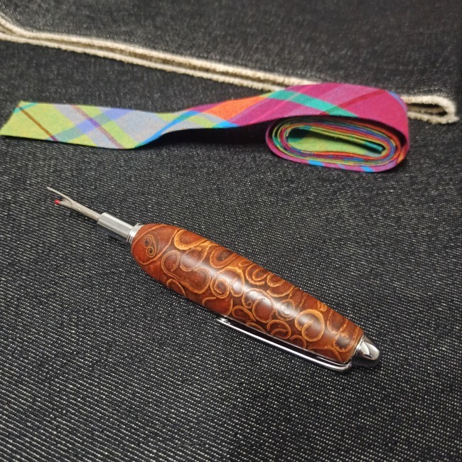 Fabrication artisanale et française : comme l'ensemble de mes créations, ces découd-vite sont fabriqués de manière artisanale dans mon atelier. Je crée mes carrelets (ainsi que les mélanges), que je travaille ensuite sur un tour à bois pour leur donner forme.