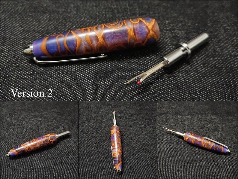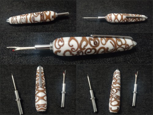 Accessoire de couture qui peut être au choix un découseur ou un poinçon.
