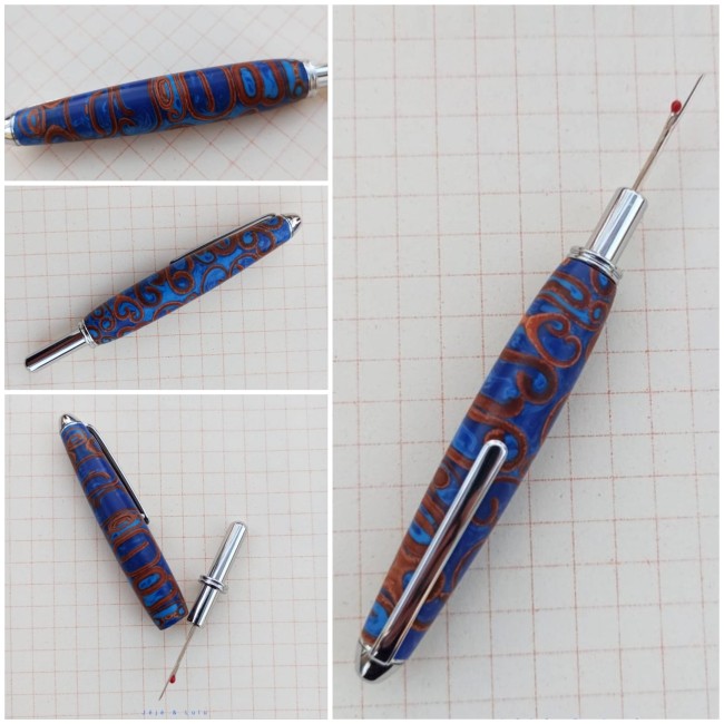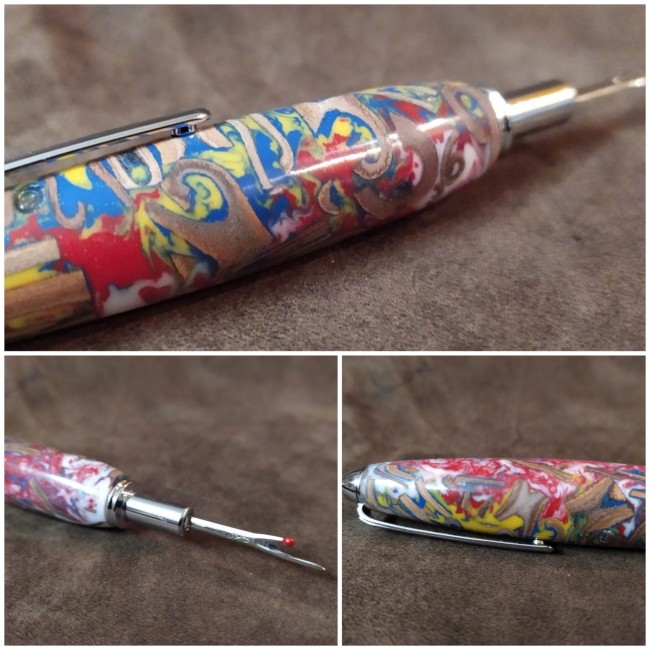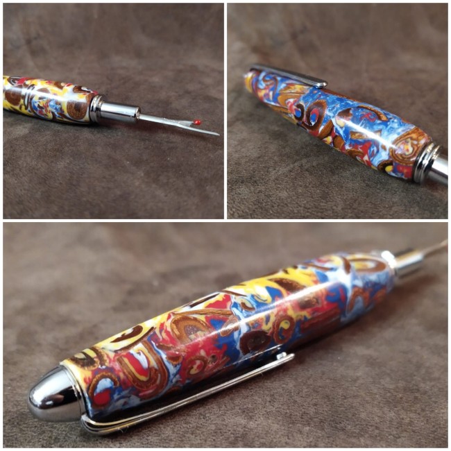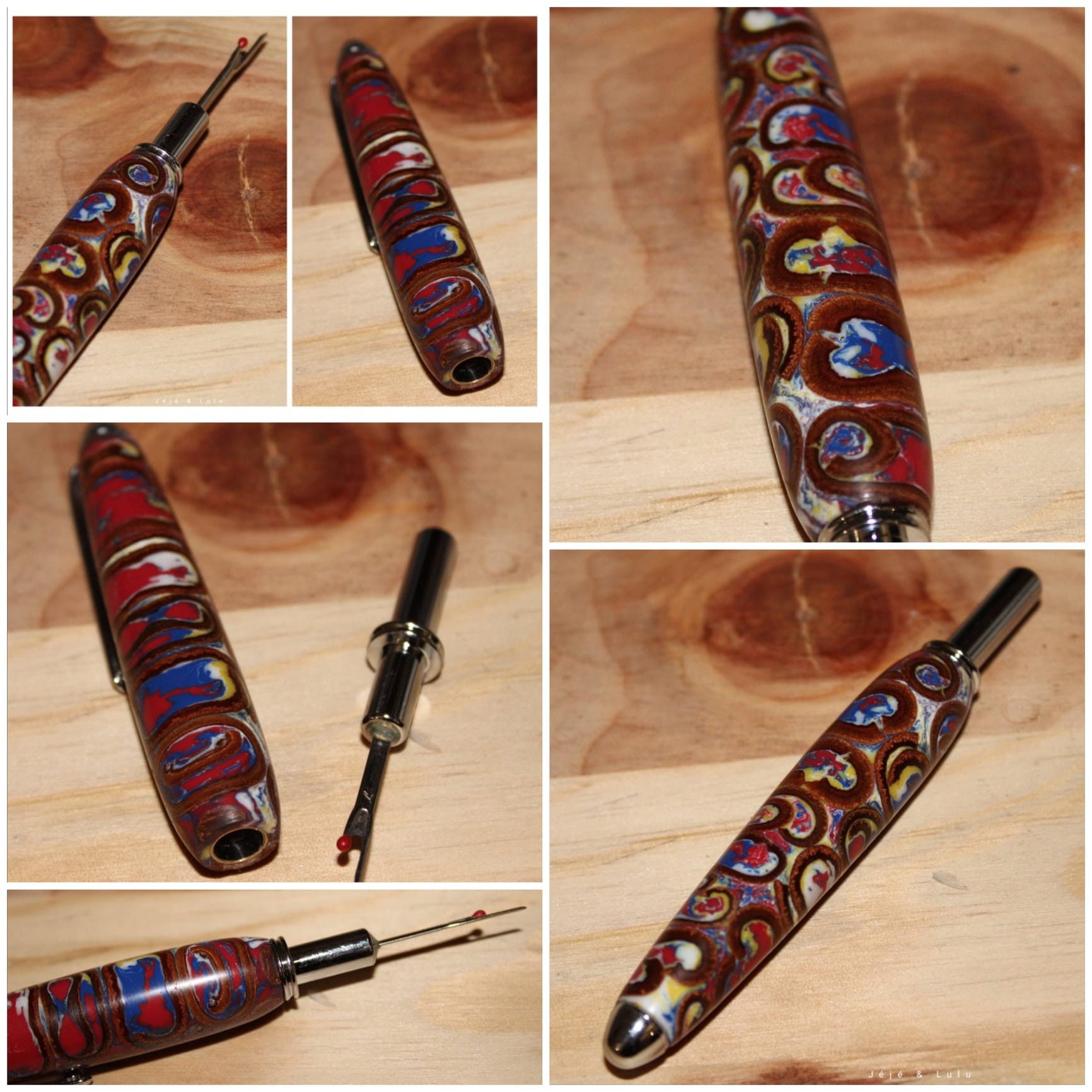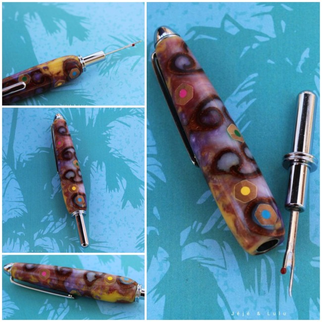 Fabrication artisanale et française : comme l'ensemble de mes créations, ces découd-vite sont fabriqués de manière artisanale dans mon atelier. Je crée mes carrelets (ainsi que les mélanges), que je travaille ensuite sur un tour à bois pour leur donner forme.