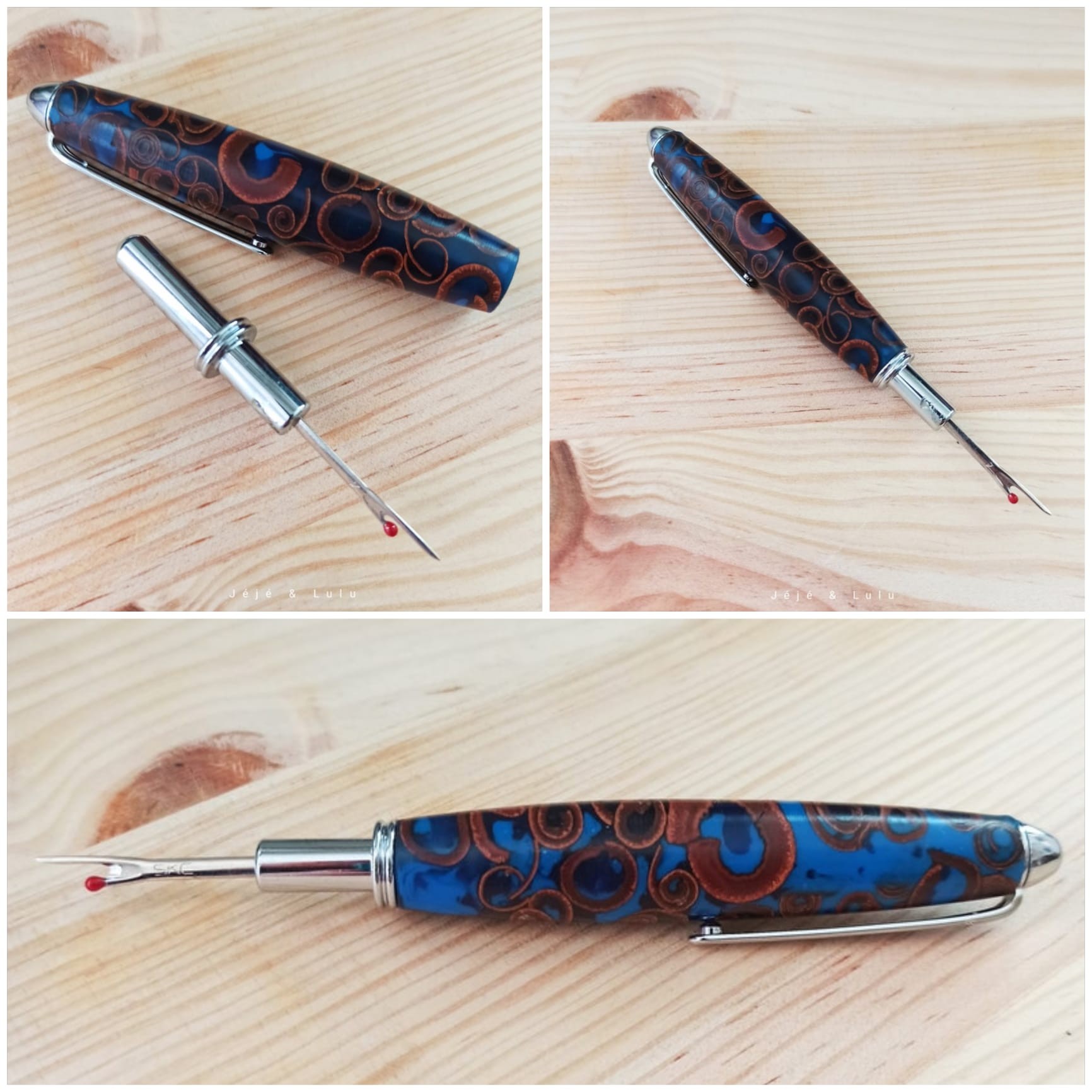 Fabrication artisanale et française : comme l'ensemble de mes créations, ces découd-vite sont fabriqués de manière artisanale dans mon atelier. Je crée mes carrelets (ainsi que les mélanges), que je travaille ensuite sur un tour à bois pour leur donner forme.