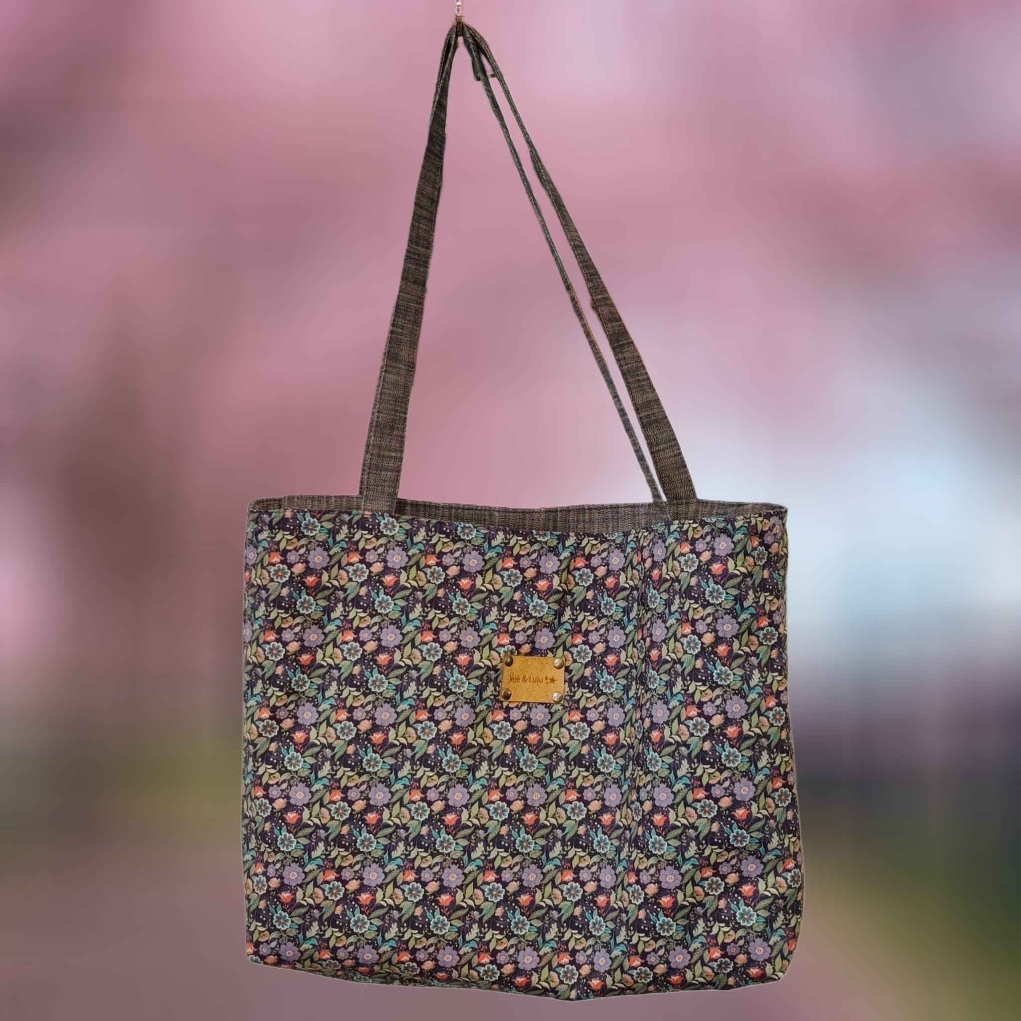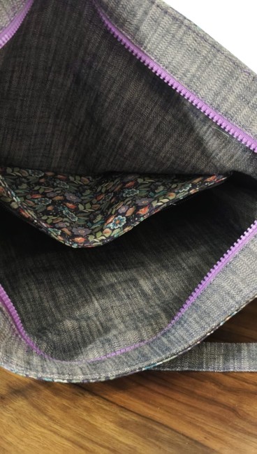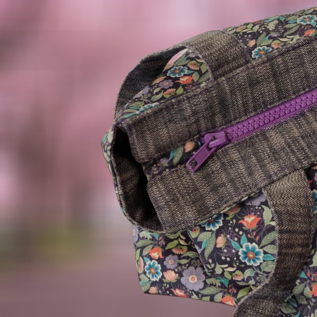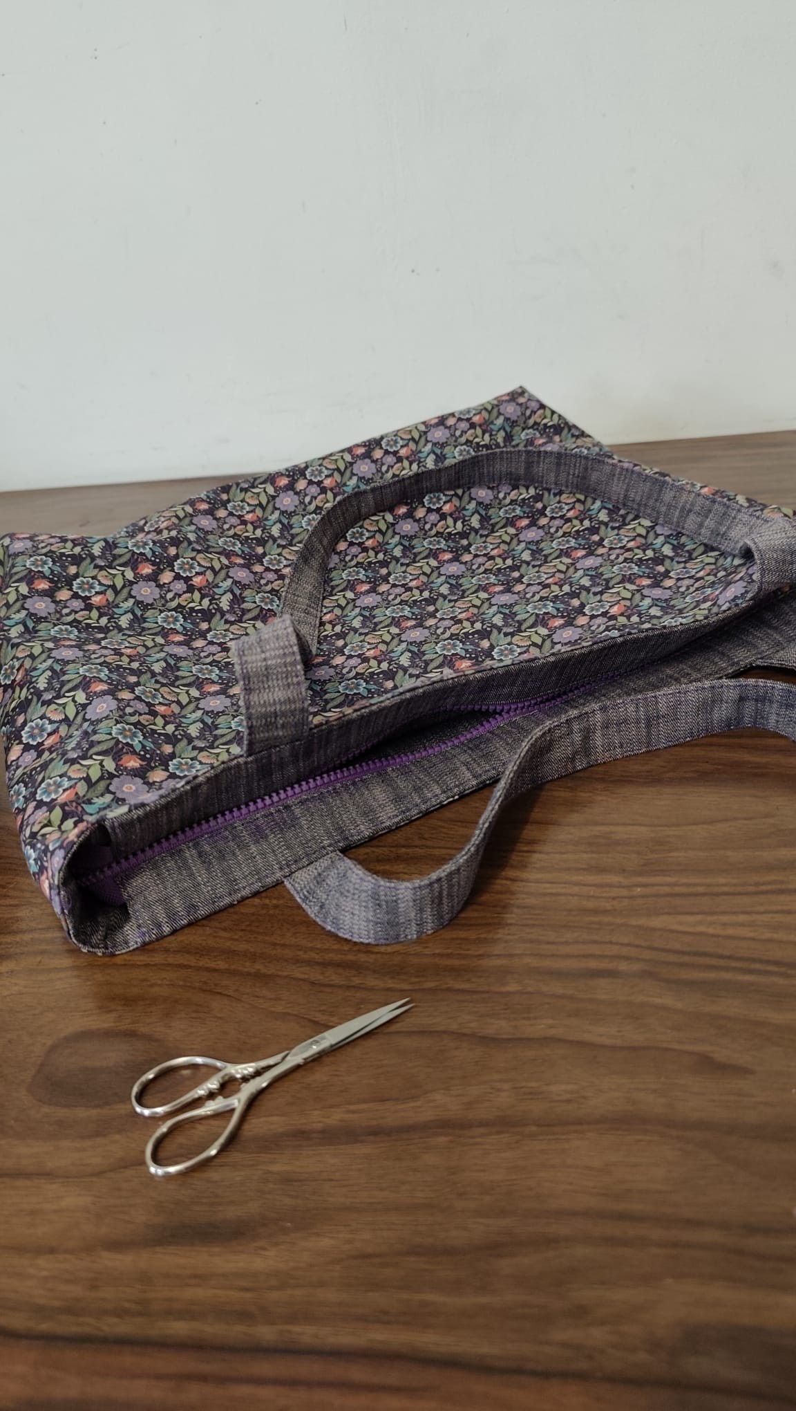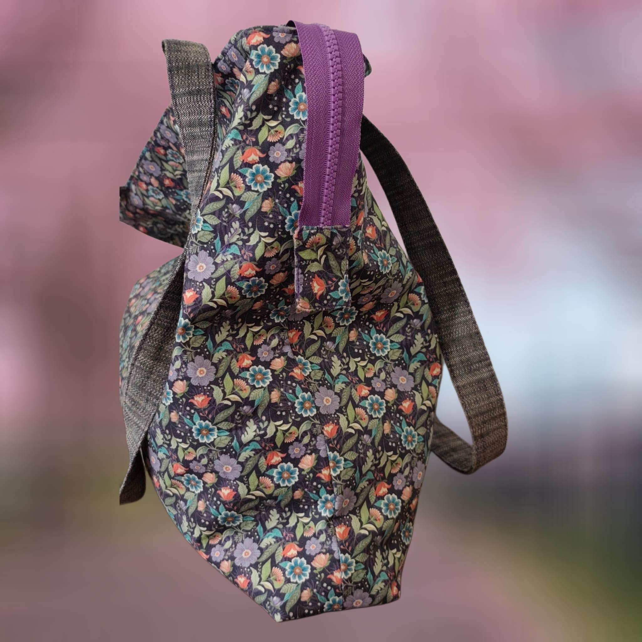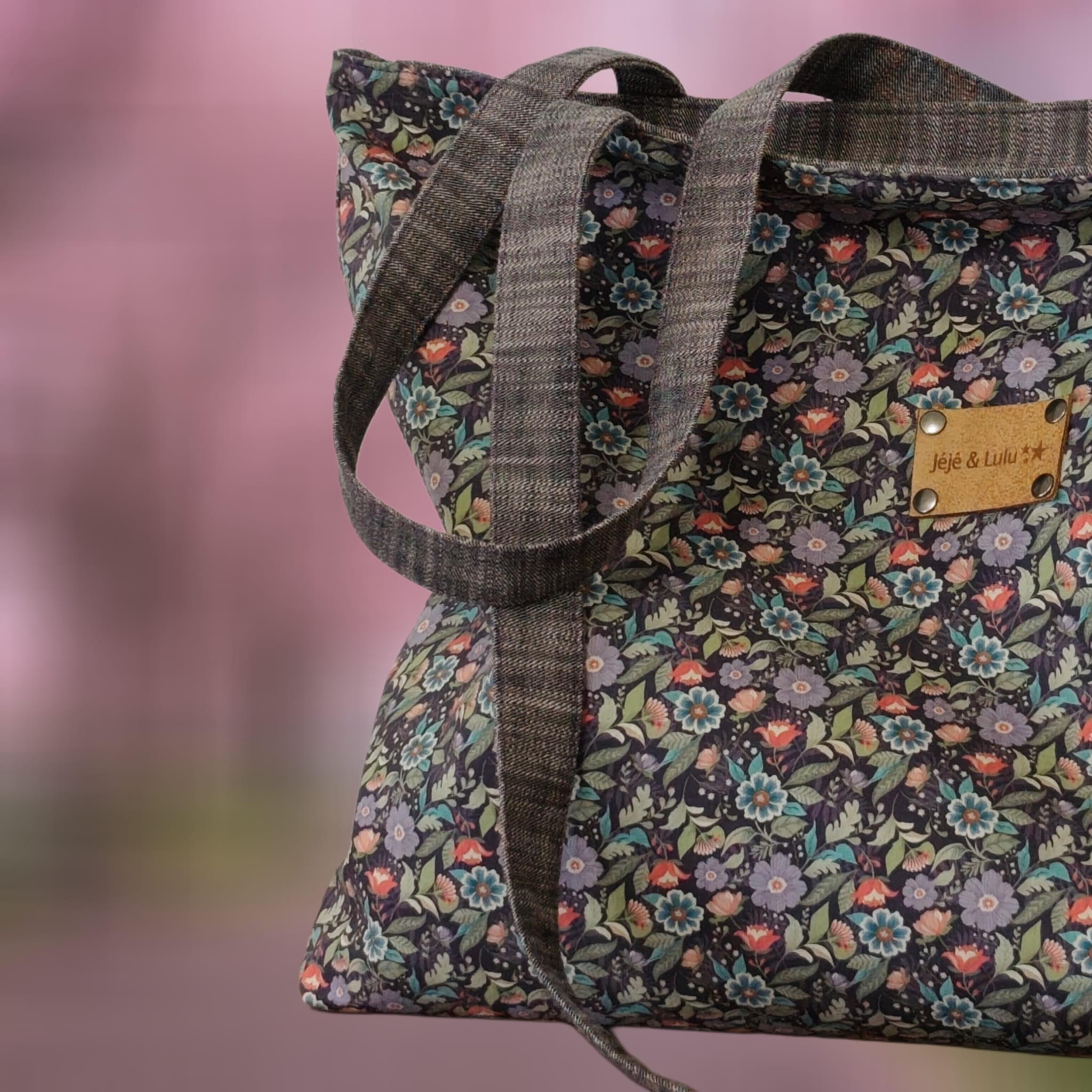 Je vous présente ici un élégant sac cabas printanier, avec fermeture zip. L'extérieur fleuri est en coton fin, la doublure en chambray. Il y a une grande poche intérieure zippée avec une oublure en satin bleu ainsi qu'un mousqueton ( à l'intérieur ).