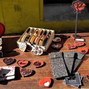 De beaux magnets en bois coloriés à la main, des fleurs, des stylos et accessoires en simili gravé, des petits porte-monnaie à découvrir dans cette Petite vidéo de présentation